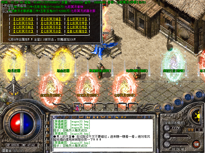 【新手专场】:开放新手天堂(土城右下角340 340进入),此地图进入后是边免费泡点升级(每秒高达20000经验),而且还可以打怪获得特殊戒指→怒血皓月→黄金皓月→粉红皓月→噬血破魂套等。