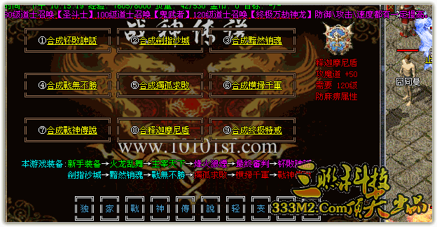 1.80级道士召唤【圣斗士】100级道士召唤【鬼武者】120级道士召唤【终极万劫神龙】防御攻击速度都有一定提高。更有超牛麻痹宝宝.