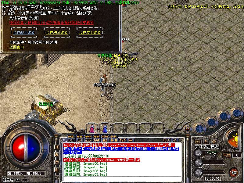 玩家1分钟可升级到35级。玩家升级到35级系统将送您祖玛套装一套,道士47级可招老虎.54召双虎