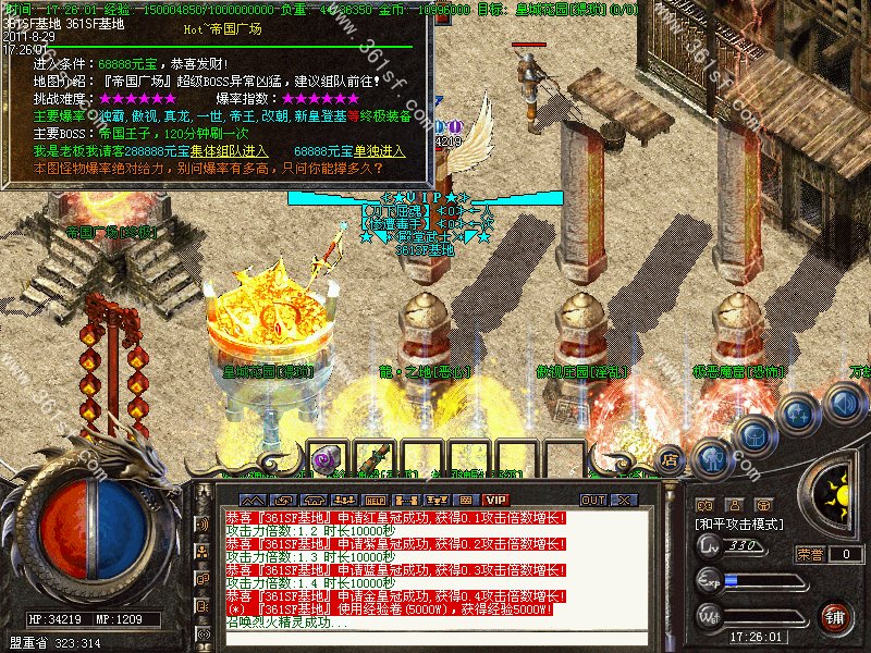 【更新】新增地图【万劫魔宅】打晶石的好地方,所有装备都暴!【极恶魔窖】打元宝的好地方! 【皇城花园】【帝国广场】装备暴率超高!