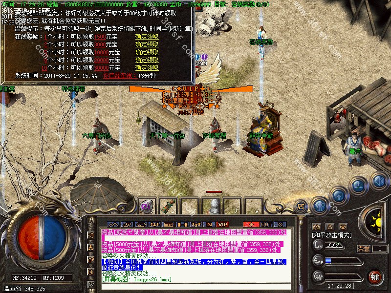 【御林军天子】每天下午5点,各城市安全区刷1只御林军天子,杀死后一定机率爆[终极装备]
