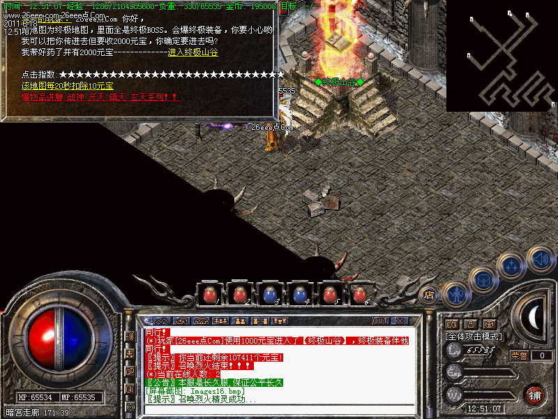 欢迎大家进入本游戏.短消息冲值1=800点卡类多赠送20%网银+银行汇款多赠送50%!!也可以在土城药店砍人形怪每砍一下可以获得1元宝让你不花钱也有花不尽的元宝,