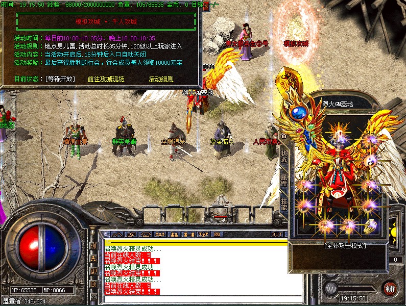 ⑧.【模拟攻城】:每天下午晚上各举行一场,杀死城内守卫,奖励海量元宝