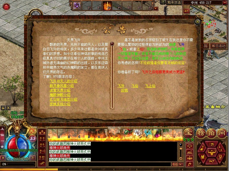 本服务器为独家修正版,为了大家能正常游戏请更新到1.998以上版本,祝大家游戏愉快