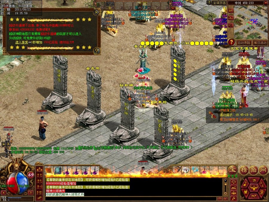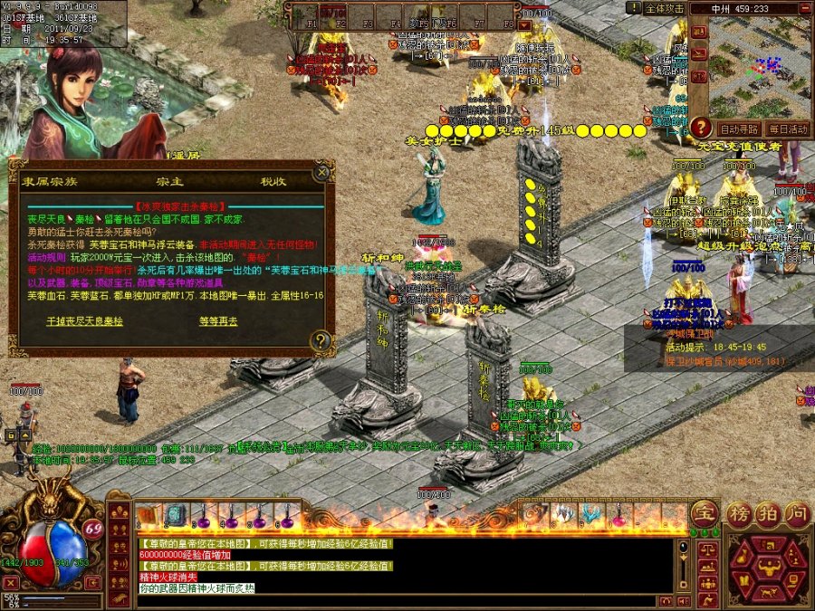 【系统公告】:最新的抢劫和绅和斩杀秦桧活动.每小时举行.杀死暴稀有物品.超级血石和魔石加15000血}