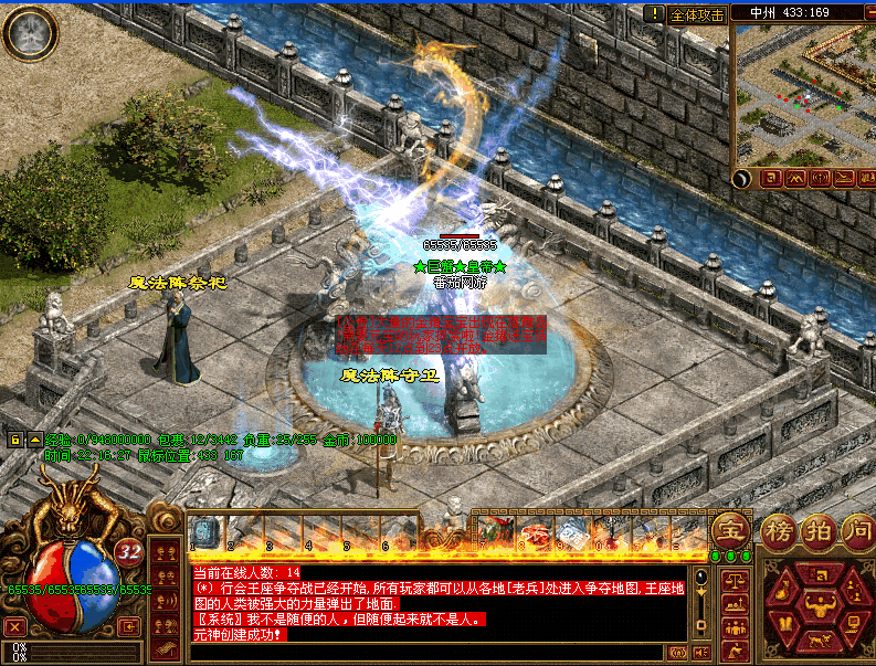 最新颠峰中变版本新装备.新技能.全新体验.新增全新活动地图迷之门,英雄王座行会掌门三把武器及至高无上的荣誉,全国首家新增魔化骷髅术及神化骷髅术,全新的天之诏令系统,碎片熔炼系统让你乐不思蜀,黄金甲,神之勋章☆,心魔,元神翅膀,装备附魔,新 增十二大地图, 增加英雄王座行会争霸,体验更多的游戏互动,强大的技术团队及雄厚的资本,打造专业,稳定,长期的仿盛大完美版本,增加盛大新装备蟠龙金甲,增加9大新开地图,增加天下第一三职业武器,增加天关积分兑换物品,增加商城金牌专区,增加钻石帐号,优化魔法技能,令三职业感受全所未有的流畅感觉,尤其是法师和道士在其它服中使用狂龙紫电和幽冥火咒总感觉三次技能中总有一次不太流畅的问题,怪物爆率得到全方面优化,新增急速神水,强效魔力神水,精神神水等盛大物品,新增更多极品怪物,让你有一种重温盛大的感觉,机会不容错过,好的版本需要耐心的你细细品味,各大BOSS均爆元宝,只要你努力,一切不是梦想,还犹豫什么,赶快进来一试为快