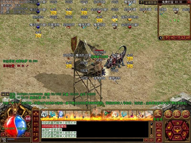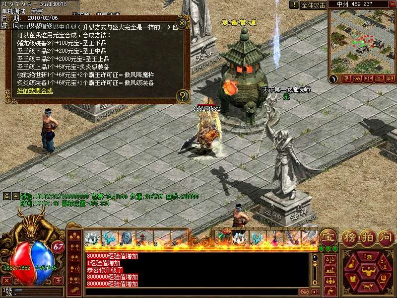 12.中州装备管理处:装备回收元宝和经验;蟠龙级,圣王级,炙炎级套装合成