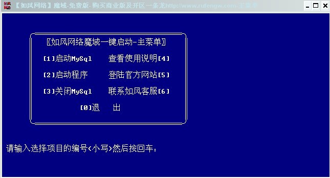 特别注意:本站所有魔域免费版MYSQL和服务端的默认连接账号和密码是root rufeng,不是test.如风网络魔域一机四区一条龙活动正在进行中,详情请登陆我们的网站查看或者与本站客服联系!另外免费版部分数据及功能混乱和删除了,所以MS商店部分无法购买的问题属正常问题,自己可以修复或者购买商业版。