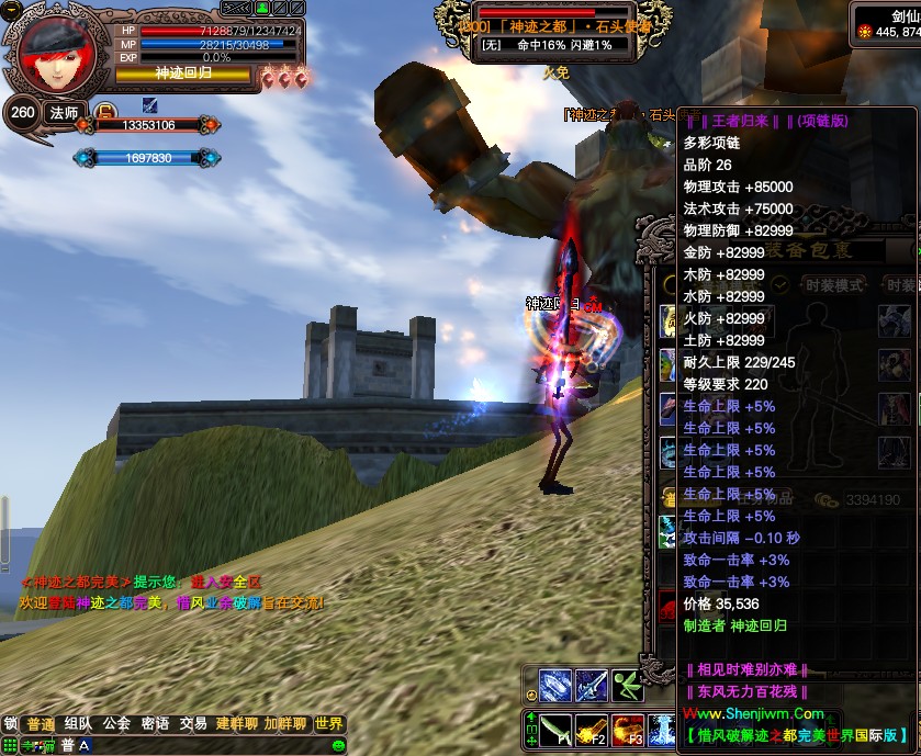 ·本服的神石在各种BOSS身上都有爆出,可以在万流杂物生产里面合成更高的神石。。。
