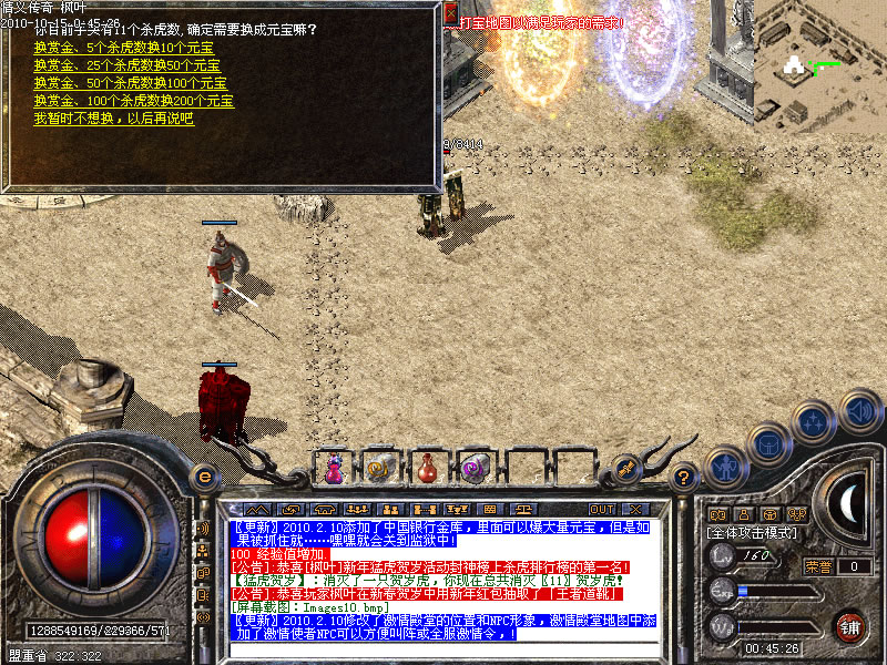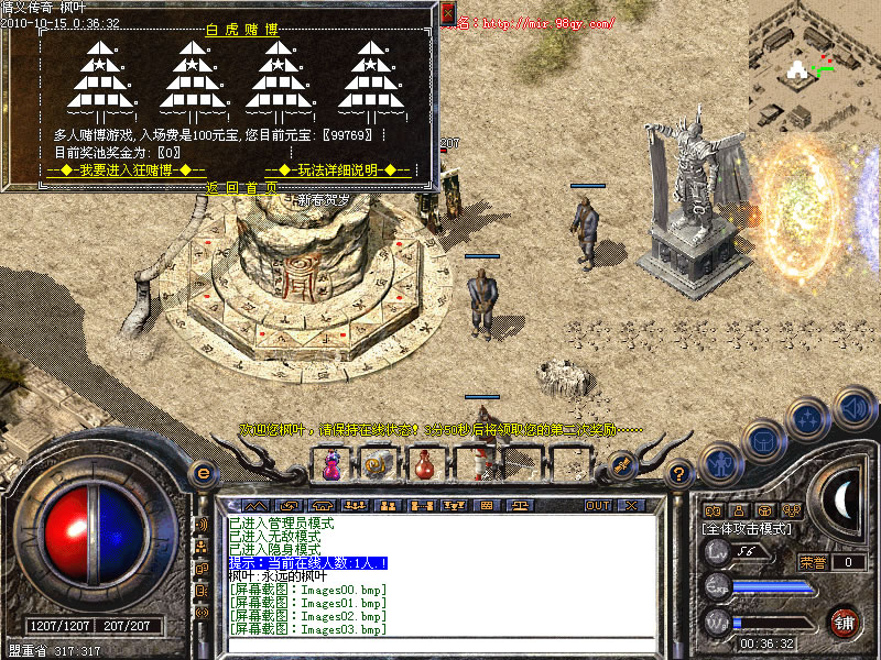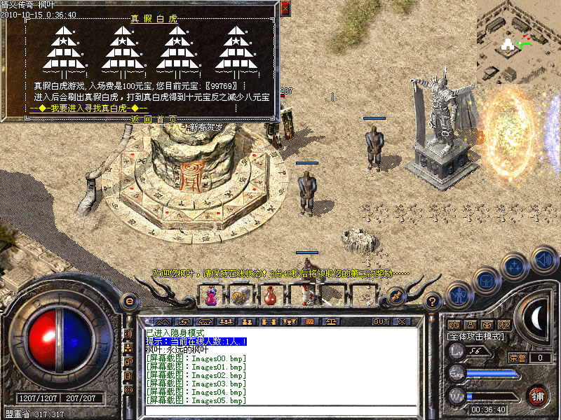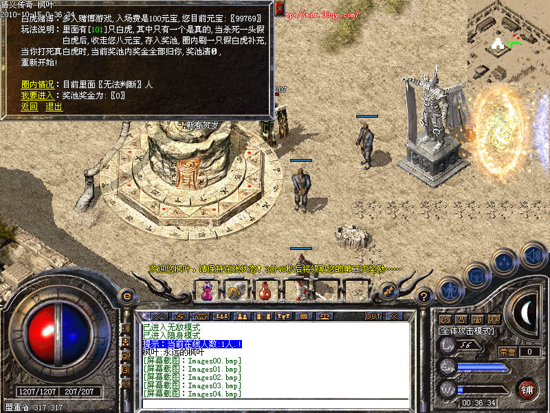 真假白虎:真假白虎游戏,入场费是100元宝,进入后会刷出真假白虎,打到真白虎得到十元宝反之减少八元宝