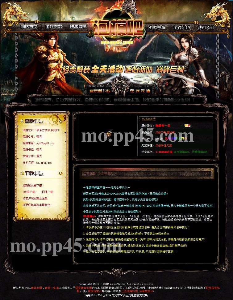 立即下载PP45传奇精美模板(金龙网站)