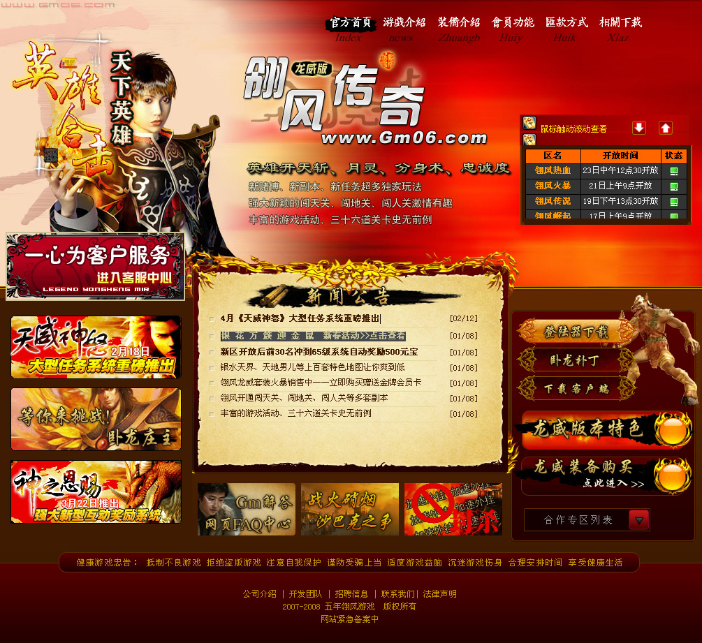 狂舞网提供游戏网站模板(翎风传奇),全静态html页面