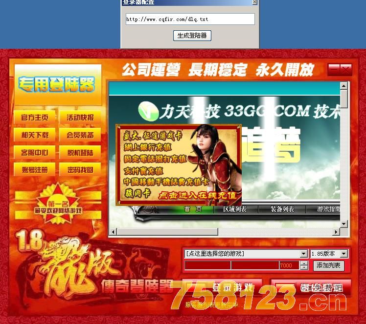 也就是说.登陆器上面的列表.传奇名字,网站.都是由他控制的..