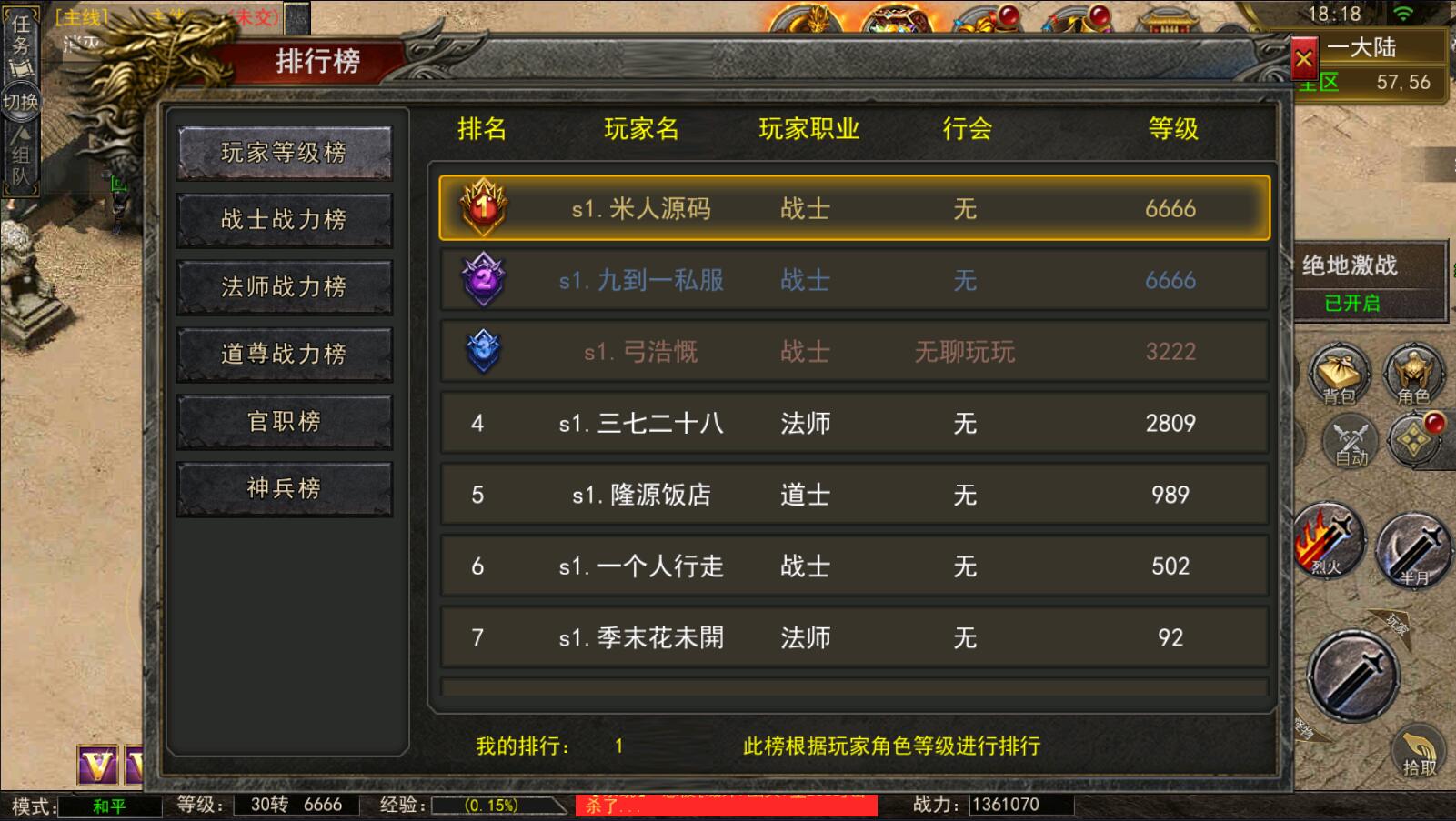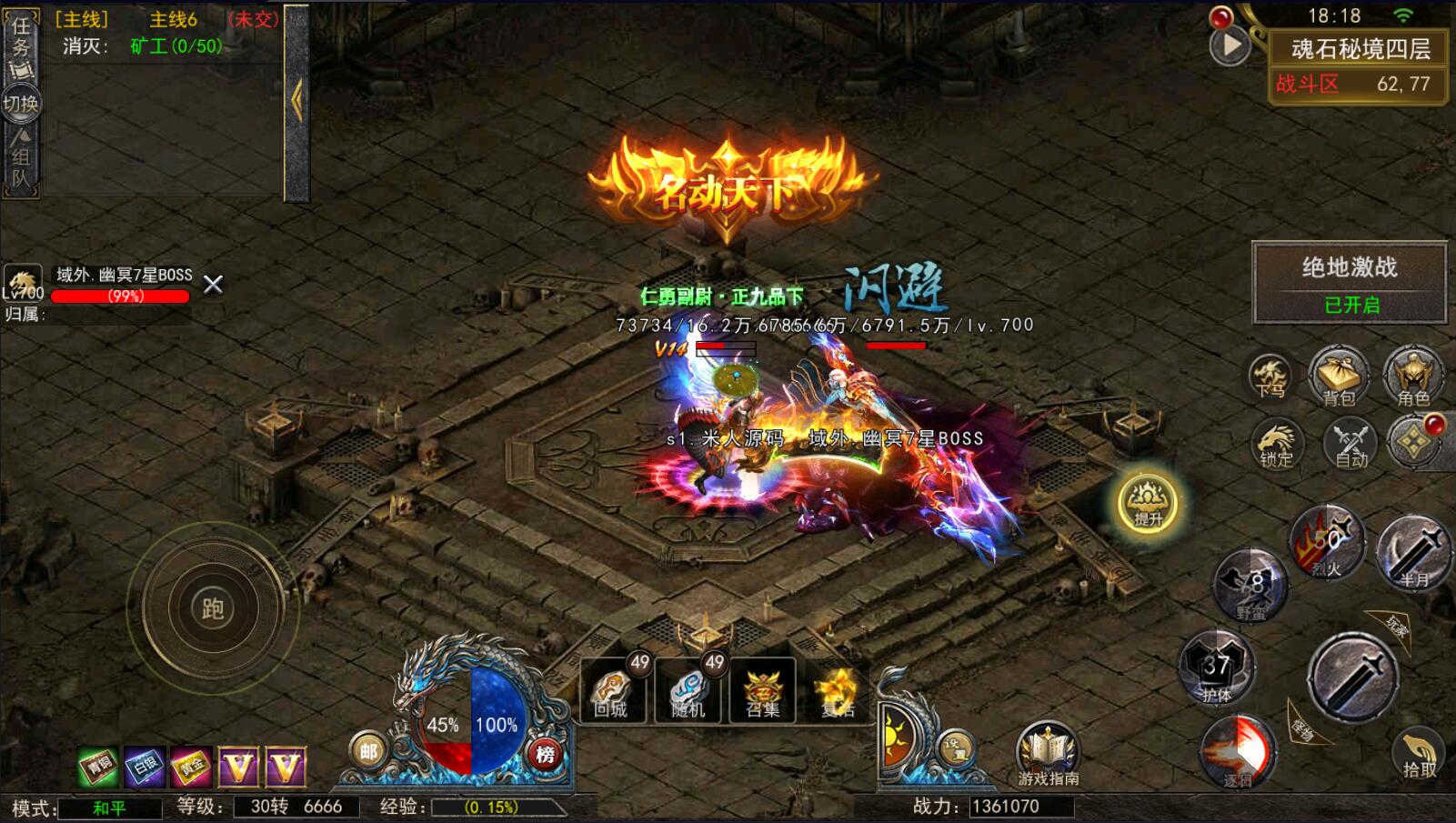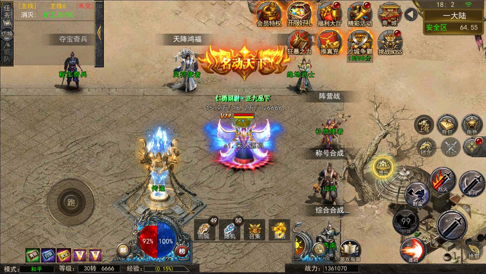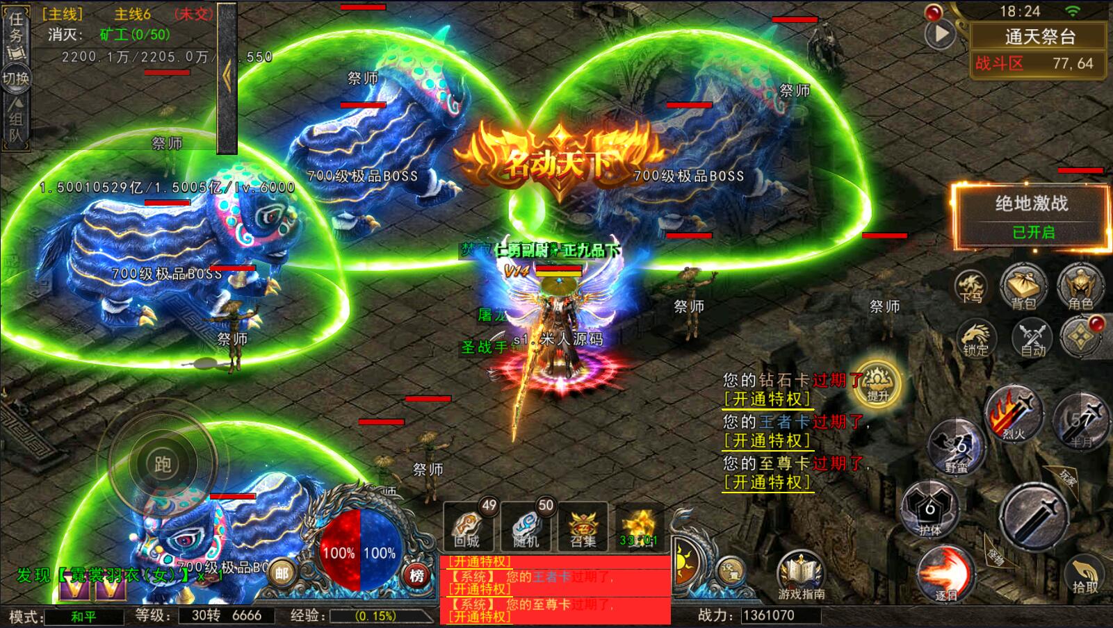 5.等级达到1000级可以打[野外BOSS]了爆率搞还掉珍惜道具和灵符.
