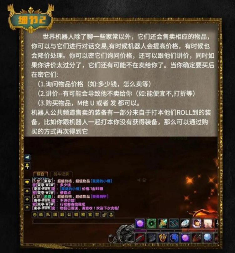 使用目前最先进的角色机器人:机器人会在公共频道售卖你当前等级能够使用的物品,在你跟机器人购买时还可以讨价还价,敲定购买后,机器人会通过付款取信的方式邮寄给你。