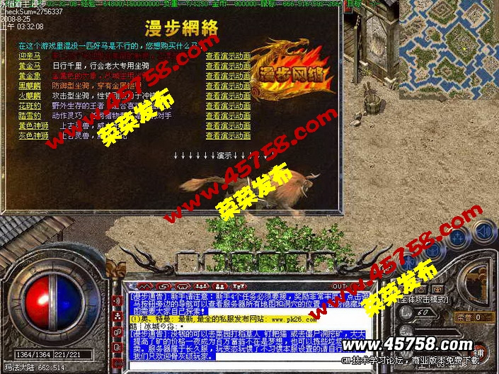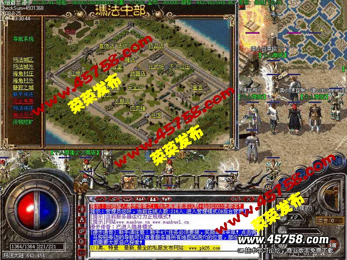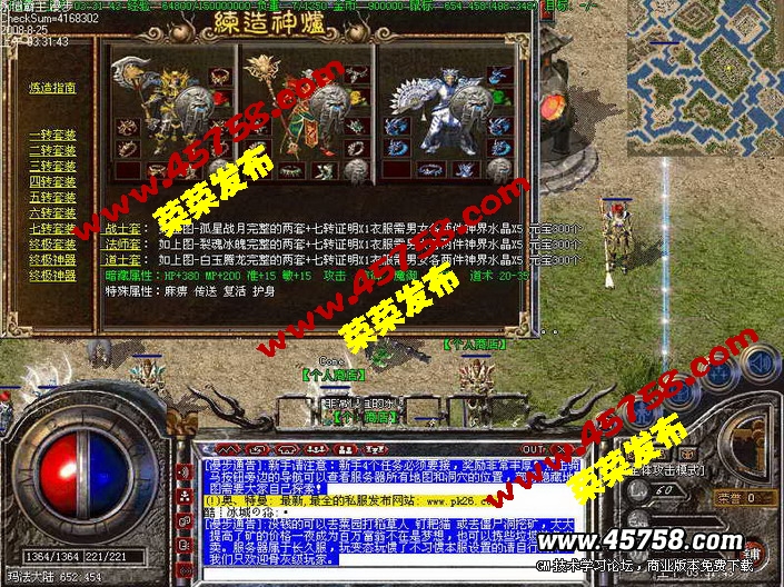关于为什么不开纯我本沉默,大家应该知道现在是2009年了,玩家心理都转变了,怀念是怀念但是真正回到以前那样估计是没几个人能玩下去。为了冲46我在网吧包了一星期的夜那时候还上学,现在呢?有人会那样吗?那时候因为没外挂去个蚂蚁洞不知道挂了多少次,现在的玩家能吗?我可以准确的回答 不能 即使能也只是很少的一部分真正的骨灰玩家,所以我在老版本 我本沉默 仙剑2003 逐鹿中原 嘟嘟传奇的基础上加了 骑马,摆摊,QQ表情,装备宝石精练,转身套装激发隐藏属性,导航系统,可视化装备炼造,这些都是比较新颖的东西,为的是让游戏多元化更家耐玩,