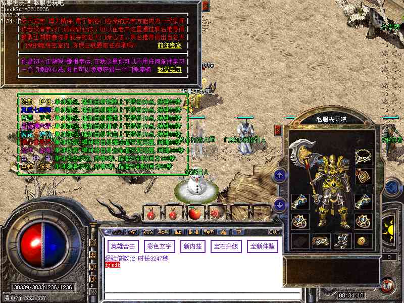 - ☉ GOM引擎传奇端游【超级骷髅王之五行世界】Win一键端+配套补丁网站+架设教程