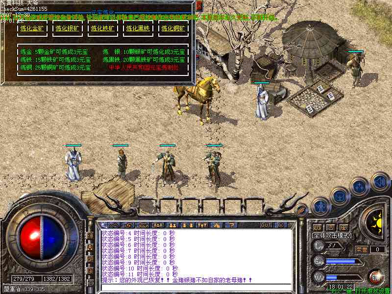 增加元宝炼化系统,玩家挖取矿石可在盟重传送员处兑换元宝 详情请见版本内