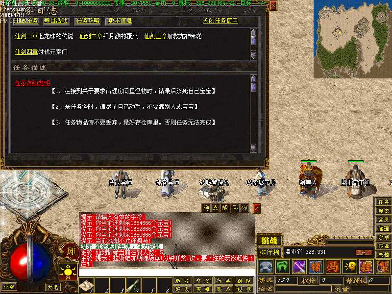 这时候先回城去把杀死火龙的任务交掉,接到30个元素门弟子首级的任务