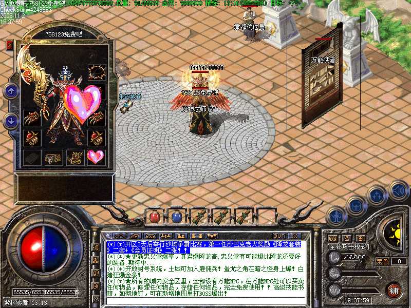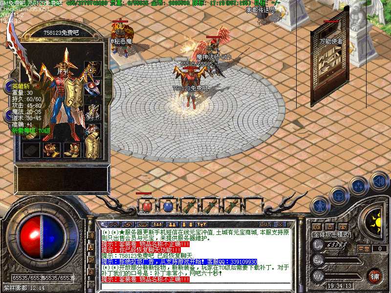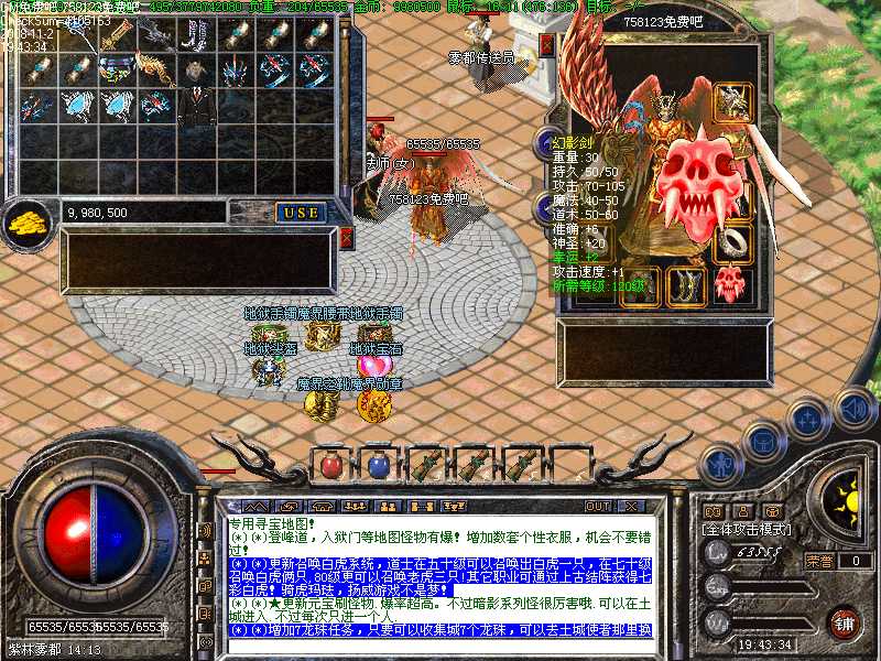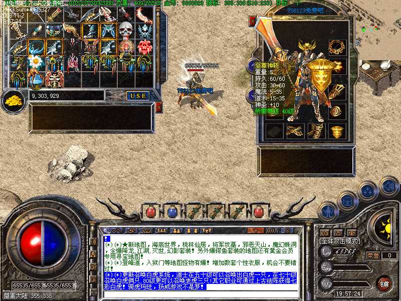 G(*)★所有的城内安全区里,全部设有万能NPC,在万能NPC处可以买卖任何物品,修理任何物品,存储任何物品,完全免费使用!!高级技能书籍,如彻地钉,可在新增地图里打BOSS爆出!