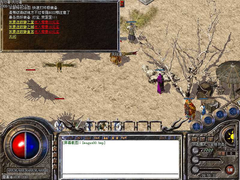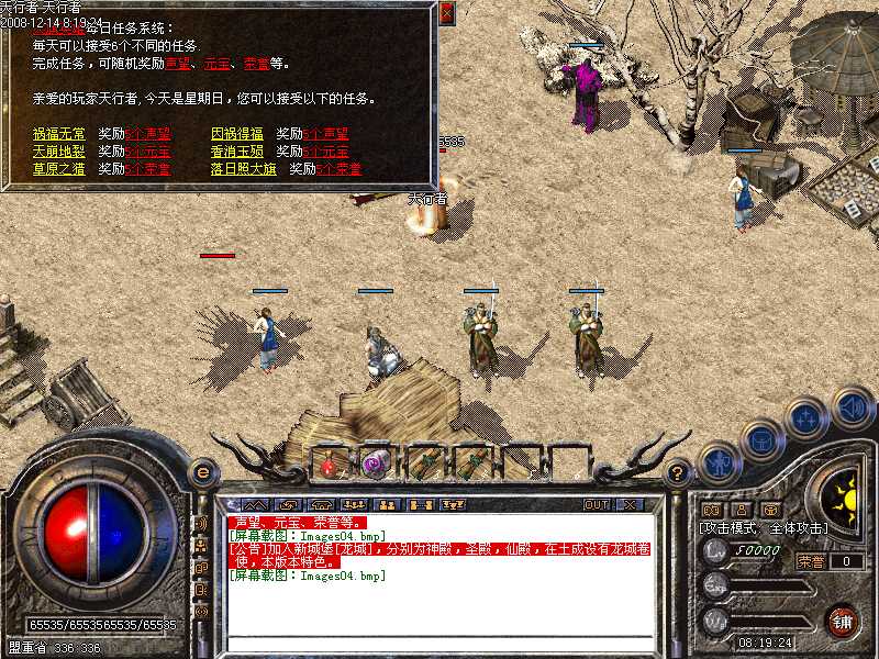 √.加入招怪大使,打死土城安全区神鹰,进入神秘地图,挑战招怪大使,获得大量元宝并红字公告提示。