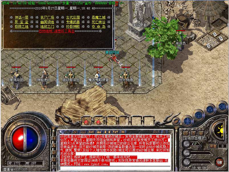 聚宝盆广场:打宝圣地主要怪物——暗之魔龙教主,聚宝使者,所爆物品:战神装备和神武装备