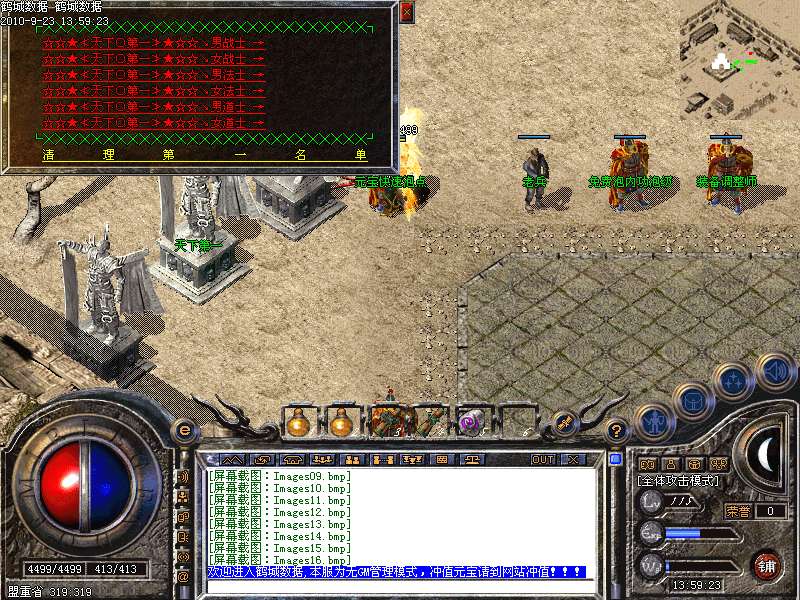 3.元宝获得方法:可打怪物直接爆出,也可打到多余的装备回收获得元宝,总之本服的元宝非常容易搞到.
