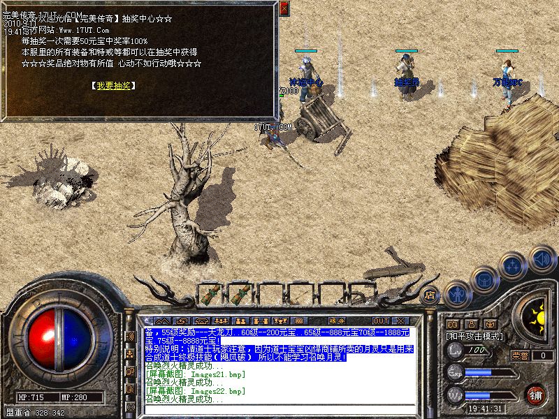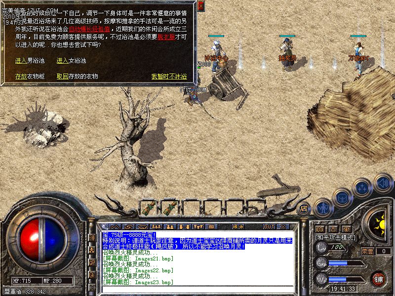 七.【特色介绍】老槐树下增加了烤火升级比休息泡点要高出30倍.是新手最佳升级方法.玩家必须拥有篝火卷,获得方式暗黑守护神和稻草人神上爆出...