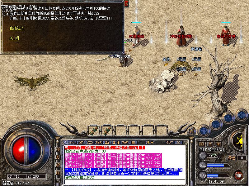 四.【地图介绍】:增加神秘之地,此地图是身份的象征,进入必须5级雇佣等级.里面BOSS刷新快,兵家必争之地...