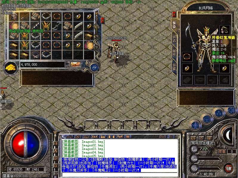 <新增怪物>[封魔殿]添加 新怪物「封魔教皇」(两小时刷一次),[炼狱回廊]也添加了「封魔精灵」「封魔力士」(一小时刷一次)![牛魔寺庙大厅]添加 新怪物「牛魔洞主」(两小时刷一次),[牛魔六层]也添加了「牛魔刀斧手」「牛魔蝎卫」(一小时刷一次)!