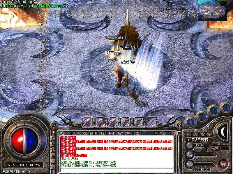 激情殿堂:每秒1200万经验200万内功经验!(可PK区域,可挂到本服顶级200级,内功255级)