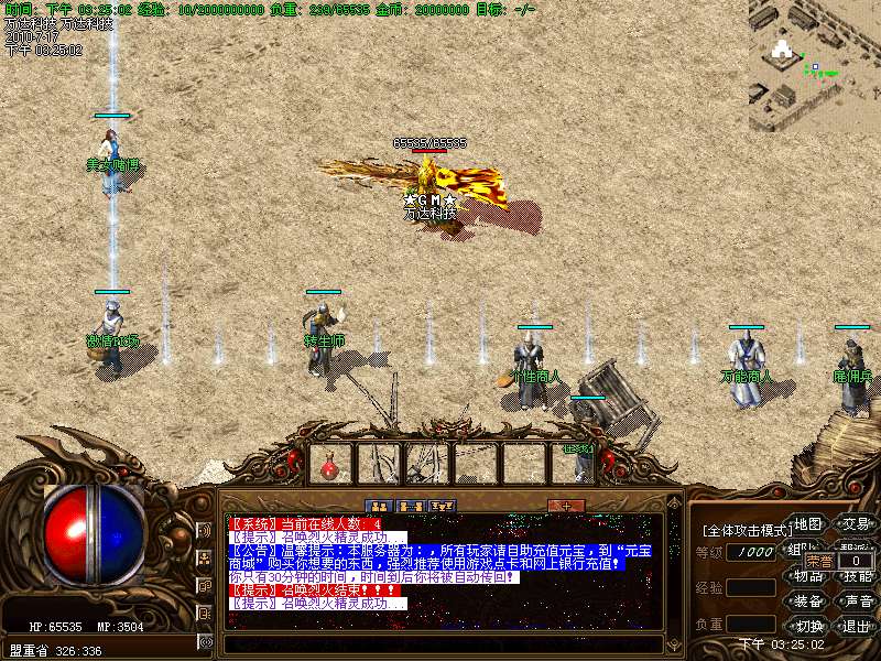 温馨提示:在土城 338 341 有个"装备回收员",在那里玩家可以把多余的高级装备兑换成元宝.