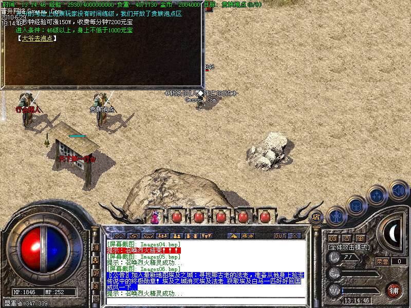 [版本特色01]快速升级:强烈推荐 贵族泡点 和 元宝练级地图!聚灵珠(大)和(小)也是快速升级的通道喔 魔龙 烟花教主 王者天将 摇钱树等BOSS会爆