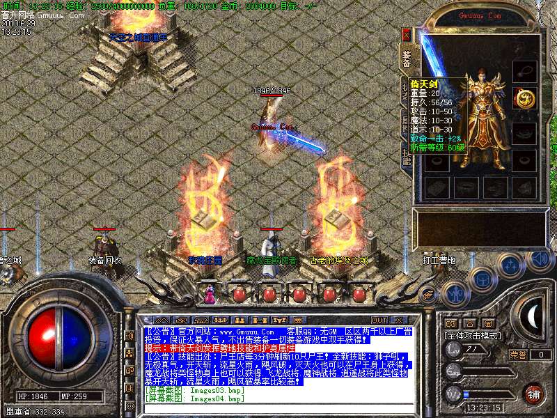 [版本特色01]服务器开放了装备合成功能,可以拿中级装备合成高级装备,详细介绍见土城左下角NPC!