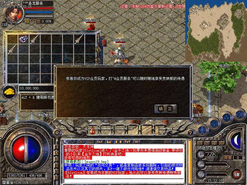 新手上线后直接进入休息间,1分钟后50级并赠送会员卡。