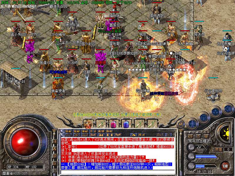a.荣誉之城:轮回教主,烟花教主,暗之烟花教主 刷30分钟 装备全部可暴