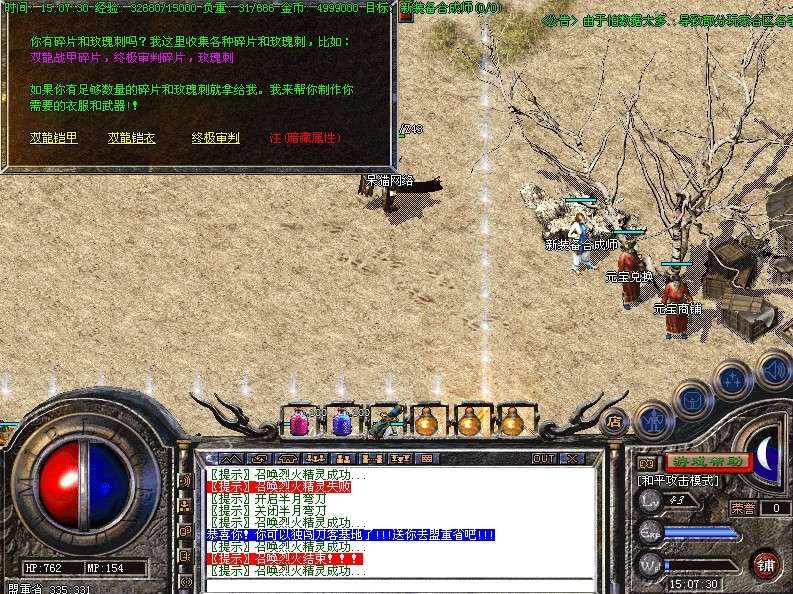 [250] 此次版本新加一把武器〖终极审判〗一件衣服〖双龍战铠〗,此武器和衣服不光属性很高,还暗藏属性,是杀人和打BOSS的好装备!