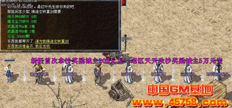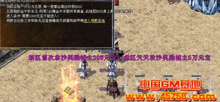 1.本服务器新区拿沙奖励城主奖励40w元宝+金牛一套,老区天天**抢沙奖励20W元宝....