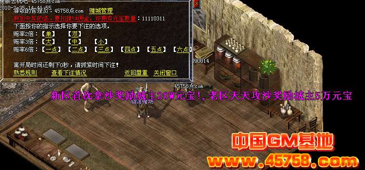 3.打元宝-----综合服务--元宝圣地(土城右边中间),有单人包厢。