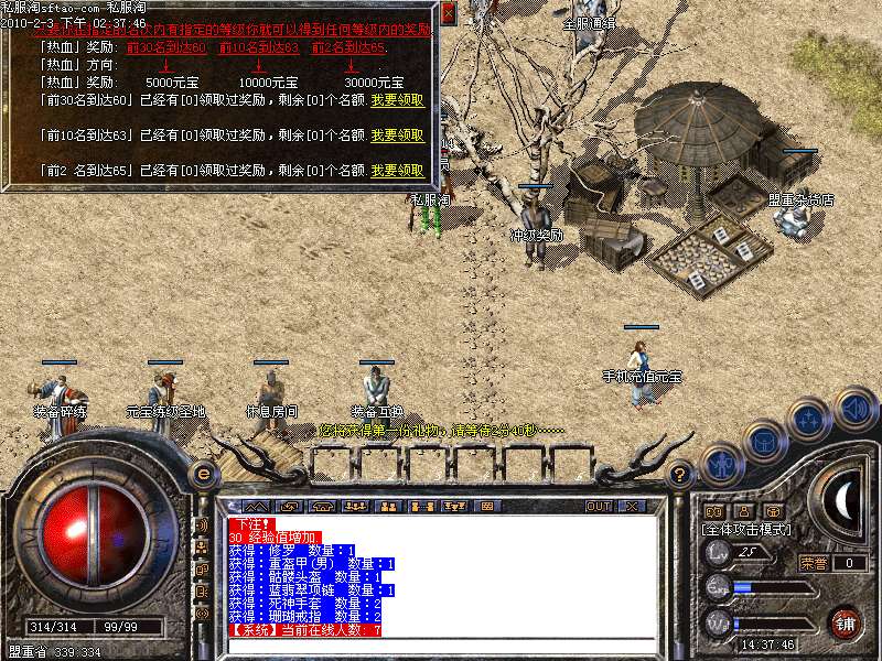 8.新区开区第3天抢沙奖5000元宝, 老区每日抢沙奖2000元宝,每周六老区抢沙奖5000元宝