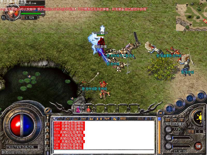 另外可以去地下宫殿,祖玛七层,沃玛三,还有新增地图的练级广场去**英雄经络经验。