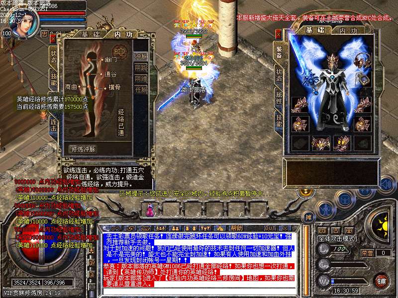 修炼英雄经络经验可以在土城【闭关修炼】进入[经验内功英雄经络三修房间]使用元宝修炼英雄经络经验