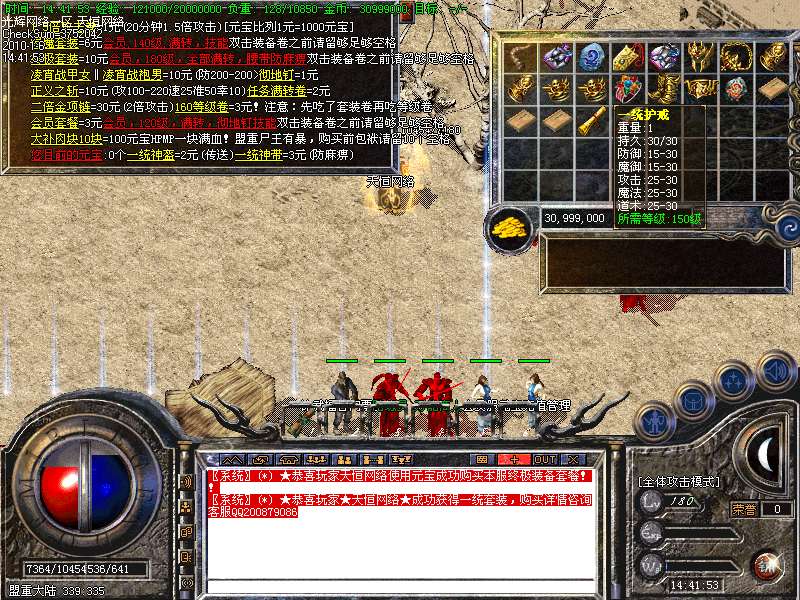 - ☉ V8引擎传奇端游【荒域专属单职业九大陆】Win一键端+配套补丁网站+架设教程