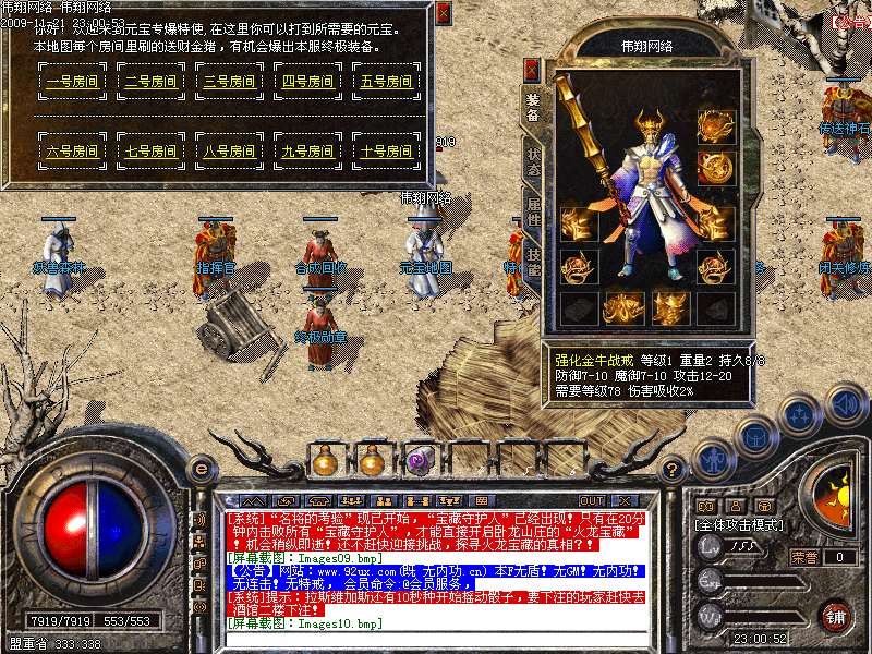 6.神威系列装备:相应地图狂暴。金牛装备出处:金牛殿主,曹操,孙权,刘备,金毛狮王等BOSS怪。终极装备炎龙系列出处:怡红院三大BOSS(此处怪物极其凶猛,建议组队前往)
