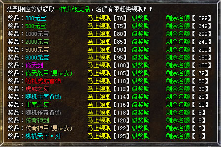 v05、【升级奖励】升级到125级时,直接奖励→纵横天下·刃