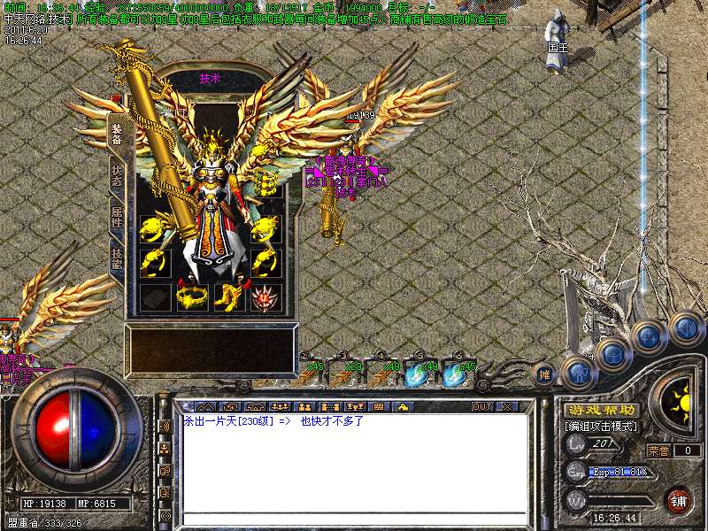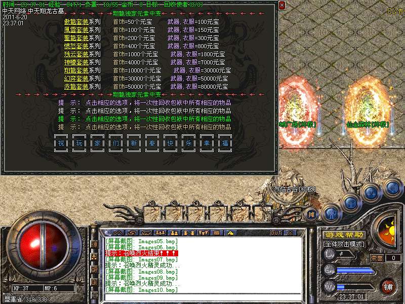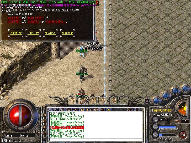 3。100级道士召唤【麒麟护卫】120级道士召唤【麒麟神兽】180级道士召唤【终极麒麟神兽】防御攻击速度都有一定提高。4。装备升级请点击包裹栏右下角漩涡按钮进行升级,如果玩家看不到漩涡按钮请下载补丁!