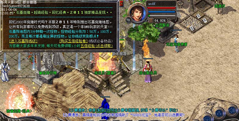 游戏活动④:大师闭关修炼区内有一团火焰,据说是三味真火,站在上面每秒可获得三千万经验,三味真火玩家必争