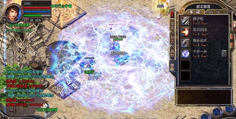 免费闭关修炼区内有一牌坊,站在上面每秒获得5000W经验,玩家必争