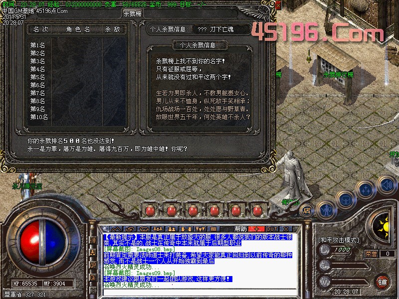【最新提示】本服是真正属于放盛大的服,很多人都说我们的版本战士很菜,其实不是的,战士在传奇中本来就属于后期型职业