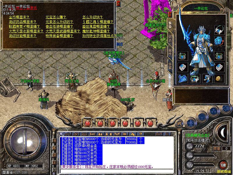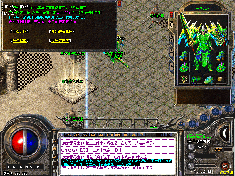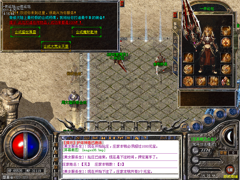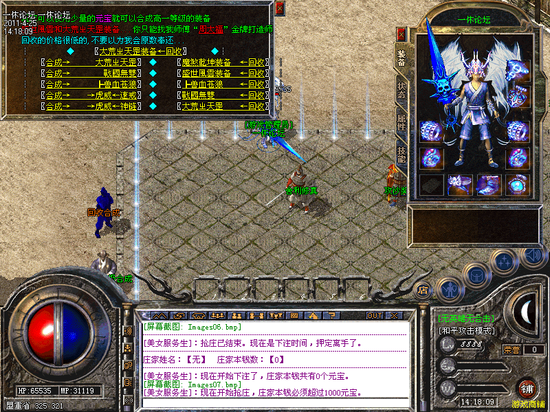 一休论坛为无英雄无合击轻变元素内挂版,最新更新出炉,增加了新地图,新装备,所有装备在游戏中全部有爆!